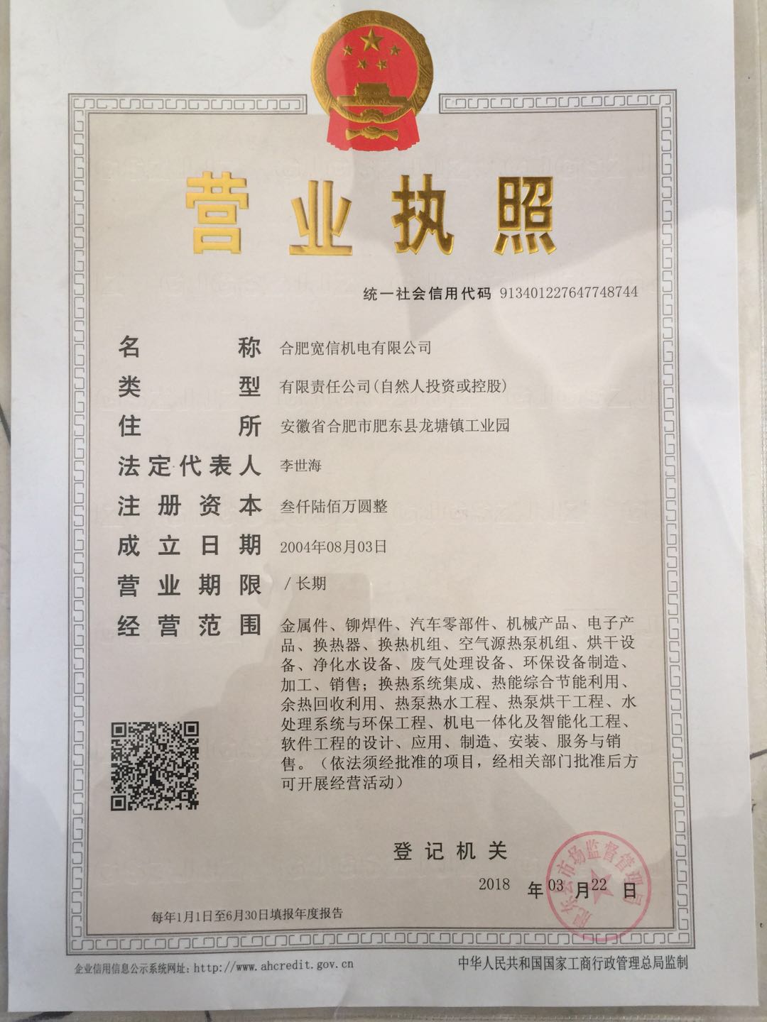 合肥寬信機電有限公司成立于2002年,是從事熱交換器、余熱回收、煙氣廢氣熱回收與凈化處理、熱泵機組及其應用、汽車零部件研發、制造、銷售與工程服務為一體的高新技術企業。公司位于合肥上海產業園,占地60畝,擁有40000多平方米標準化工業廠房,10000多平方米研發、營銷、服務綜合樓,各類生產、檢測、實驗設備300多臺套,科研技術開發團隊50多人,自主知識產權及國家專利和研究成果60多項,在熱交換器、余熱回收、熱泵機組應用、廢氣凈化處理方面都具有較強的實力。